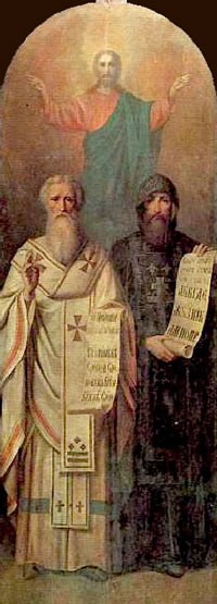 Igreja Bizantina, livre afinal da longa luta contra os iconoclastas, virou sua energia para a conversão dos Eslavos pagãos que estavam além das fronteiras do Império, ao norte e noroeste - morávios, búlgaros, sérvios e russos. Photius foi o primeiro Patriarca de Constantinopla a iniciar um trabalho missionário de larga escala entre os eslavos. Ele selecionou para a tarefa dois irmãos, gregos de Tessalônica, Constantino (826-869) e Metódio (815-885). Na Igreja Ortodoxa Constantino é usualmente chamado de Cirilo, nome que ele recebeu ao tornar-se monge. Conhecido na vida prévia como "Constantino o Filósofo," ele era o mais capaz entre os pupilos de Photius, e tinha familiaridade com uma grande linha de línguas, incluindo hebreu, árabe e até mesmo com o dialeto samaritano. Mas a qualificação especial que ele e seu irmão tinham era seu conhecimento de eslavônico: na infância eles aprenderam o dialeto dos eslavos nos entornos de Tessalônica, e eles podiam falar esse dialeto fluentemente.
